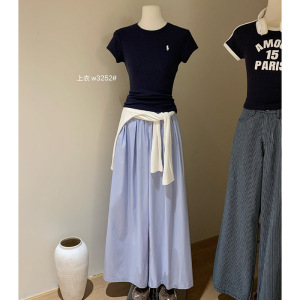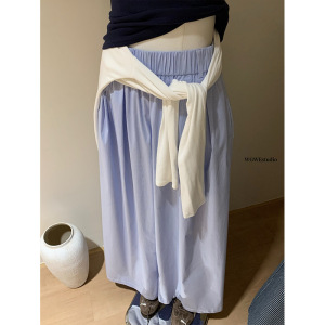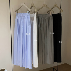 Xifengguan WGWE5380 韓国風レイジースタイルフロアレングスパンツ万能ドレープストライプワイドレッグパンツ