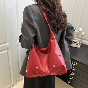 ポータブルショルダーバッグリベットデザインファッション 2025 カジュアル個性夏の新しい人気のファッションシンプルな脇の下バッグ