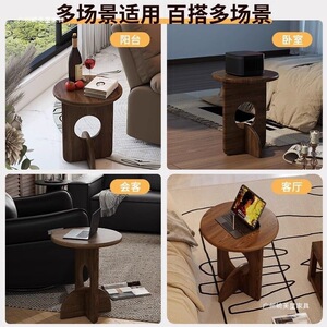 实木边几胡桃色现代客厅复古风沙发边几角几家用客厅创意茶几茶桌
