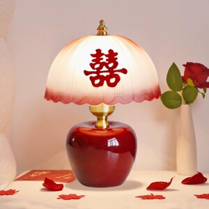 ウェディングロングランプ、赤いテーブルランプ、ウェディングルームのベッドサイドランプ、新婚夫婦用の花嫁の付属ランプ、お祝いの結婚祝いギフト