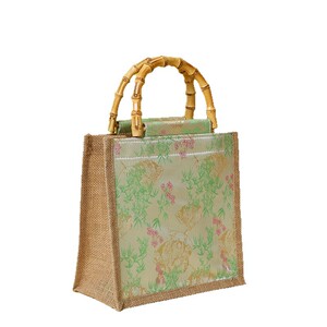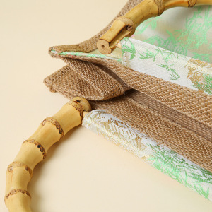 緑の竹ポータブルレトロギフトバッグ新中国風のプリントリネンハンドバッグ端午節ポータブルギフトバッグ