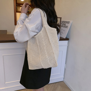 夏の新しい大容量織りトートバッグ女性のための韓国語版インレトロショルダーバッグカジュアルレイジースタイルニットバッグ