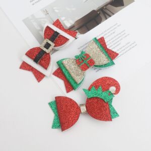 クロスボーダークリスマスリボンヘアピンスパンコールオニオンピンクフェルトボトムリボンクリスマスヘアピンパーティーヘアアクセサリー