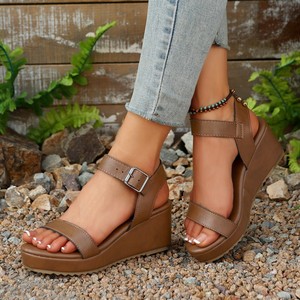 坡跟凉鞋外贸2025夏季新款厚底大码欧美露趾凉鞋女跨境罗马凉鞋43