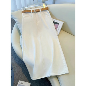 デニムスカート レディース 2025春夏新作 オフホワイト ハイウエスト スリム バックスリット ストレートスカート ヒップカバースカート