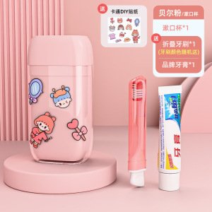 ピンクのダブルカップセット[歯磨き粉*1+折りたたみ歯ブラシ*2-ステッカー]