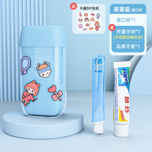 ブルーシングルカップセット【歯磨き粉+折りたたみ歯ブラシ・シール】