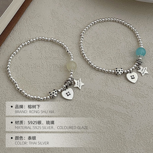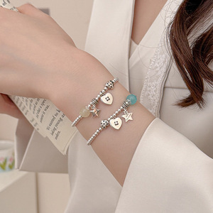 ガジュマルの木の下のS925銀の小衆の甘いクールな風の愛の星の数珠のブレスレットの女性のシンプルな個性の韓国版の女性の蜜の手は飾ります。