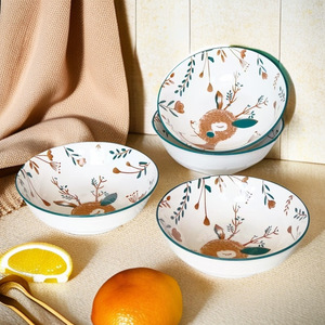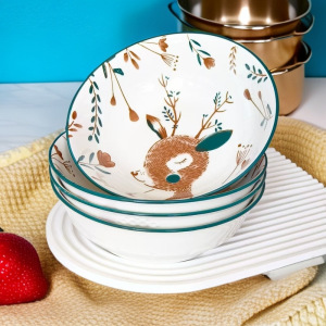 かわいい鹿の7インチの大きいサイズの航空碗の陶磁器の家庭用の顔の碗の個性のラーメンのアイデアの食器のスープの碗の闘う碗