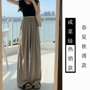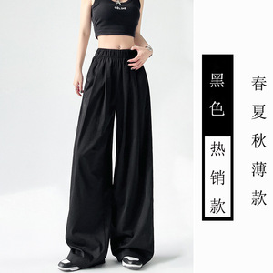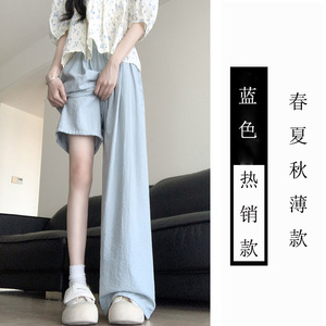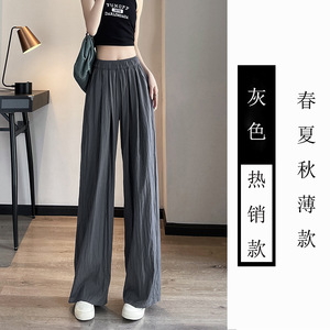 大きいサイズ 150kg グレーワイドレッグパンツ女性の春夏薄いハイウエスト痩身ルーズカジュアルスポーツ速乾性山本パンツ