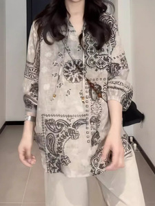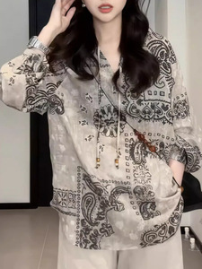 レトロ長袖日焼け止めシャツ女性のための 2025 夏の新しい休暇怠惰なスタイルのブラウス軽くてルーズなトップ