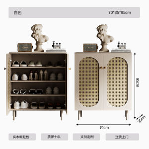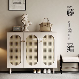 新しいレトロな黒の靴キャビネット玄関ホーム籐ドア黒の靴キャビネット中世スタイルの玄関ドア靴キャビネット大容量