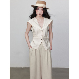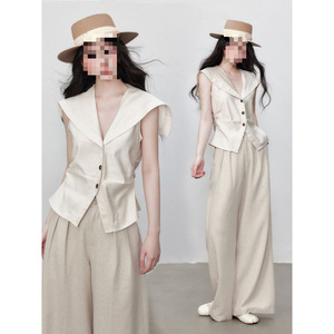 2025夏の高級感セット海軍の襟の気質vネックの上着のファッション的な洋風のズボンの古いお金の風の2つのセット