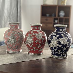新しい中国風のパステルセラミック花瓶青と白の磁器リビングルーム玄関フラワーアレンジメントデスクトップホーム装飾牡丹花瓶