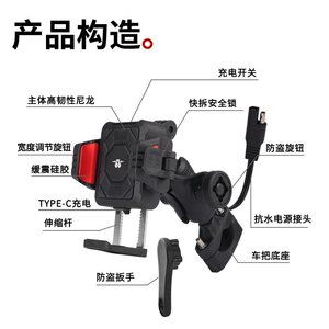 2025新型オートバイ免震携帯電話スタンド機関車乗用携帯電話スタンド無線充電スタンド防犯ミニ