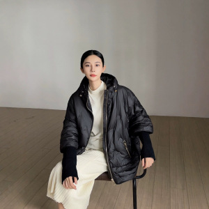 ダウンジャケット女性 2025 新しいショート冬黒スタンドカラーアヒルダウン厚く暖かいカジュアルカーゴジャケット