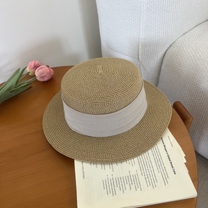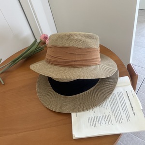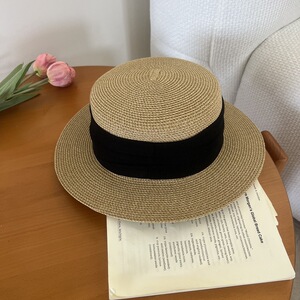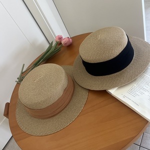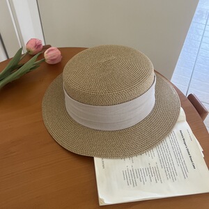 女の子用のフレンチフラットつばフラットトップ麦わら帽子、夏の日よけと日焼け止め帽子、夏の海辺の休暇ビーチハット、日よけ帽子