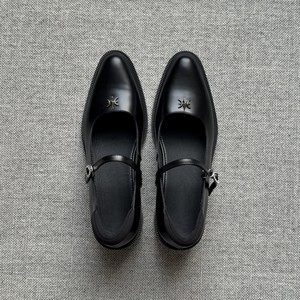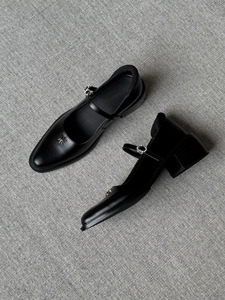 2025 新英国スタイルラウンドトゥ浅い口メリージェーンシューズ女性のための春と夏の新しいレトロ厚いヒールワンラインバックル小さな革靴