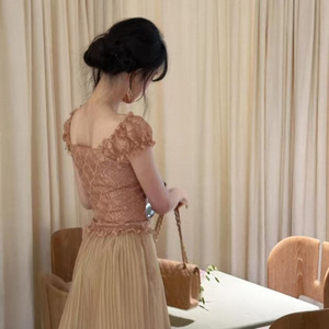 女性のためのスーツ 2025 春の新フレンチスタイルの優しいスタイル甘い V ネックレース半袖トップ気質プリーツスカート