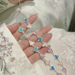 足银999.9描金珐琅彩色蝴蝶花宫廷风手链国风直播爆款高颜值批发