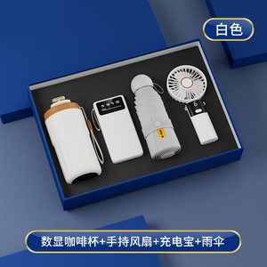 ブラックコーヒーカップ + ファン + モバイルバッテリー + 傘