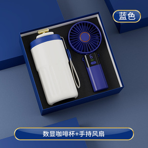 ブルーのコーヒーカップ + モバイルバッテリー + ファン