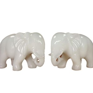天然白玉吸水大象摆件一对动物客厅玄关家居装饰品玉石雕刻新中式
