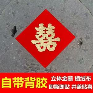 ウェディング用品 ウェディングガイドマンホールカバー ハッピーワードステッカー 赤い植毛布 ゴールデンハッピーワード 粘着マンホールカバー ハッピー不織布