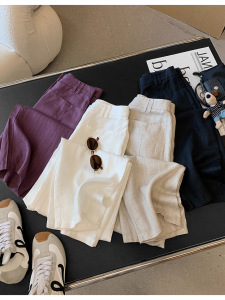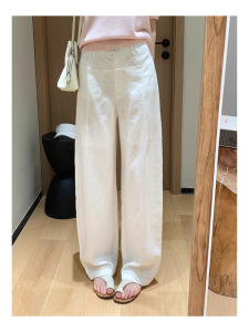 オールドマネーリネンパンツ!オーダーメイドヘリンボーンテンセルリネンブロークンワイドパンツルーズコクーンカジュアルパンツ