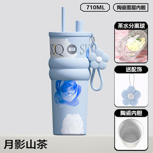 保温カップ男女の高颜値新型大容量陶磁器内胆車載ストローコップ夏携帯コップ