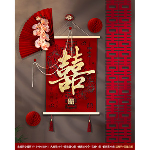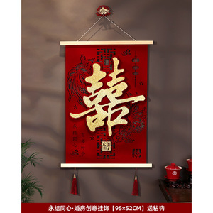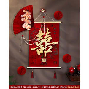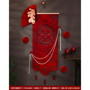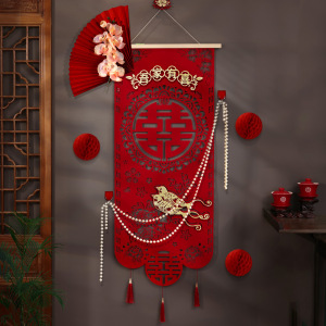 結婚式の部屋のレイアウト結婚式の装飾ハッピーワードペンダント男性と女性の雰囲気寝室リビングルーム中国風 2025 背景壁