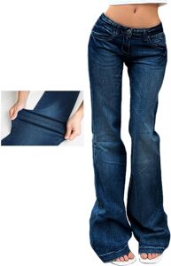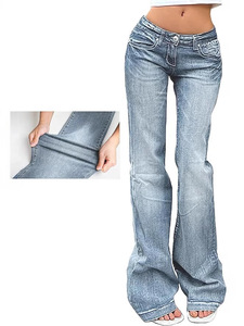 欧米の外国貿易TEMUアメリカのレトロなギャルのラッパのズボンは身を修めてやせている弾力のジーパンの女性のズボンを現します。