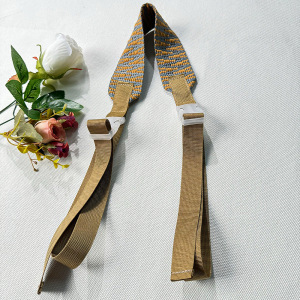 ベージュブラウンのジャカードワイドショルダーストラップ