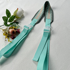 スカイブルー・ベージュのジャガードワイドショルダーストラップ
