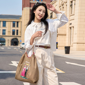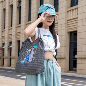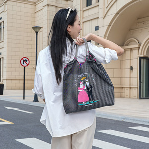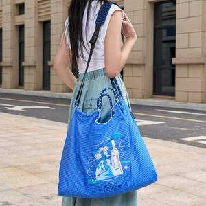 オリジナル百合ボールグァンチェーン環境保護袋精致刺繍ナイロンショッピングバッグ手提げ女性ショルダーバッグ
