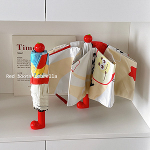 かわいい高颜値晴雨両用傘児童学生日焼け止め紫外線防止赤ブーツ日傘傘女子学生