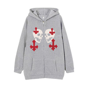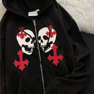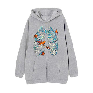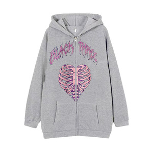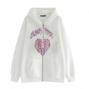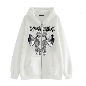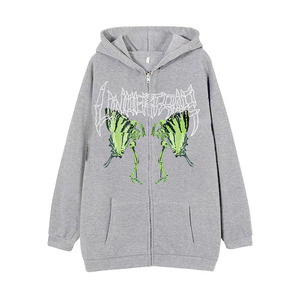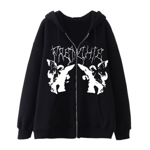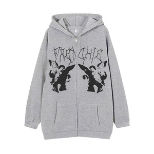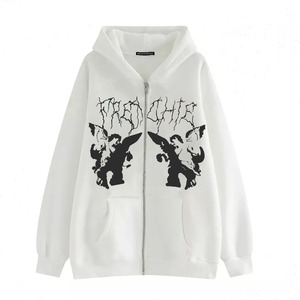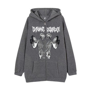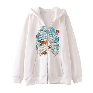 新製品在庫ありスカルウィングフード付きジッパートレーナー女性用韓国風ベルベット厚みのあるルーズスポーツカーディガントレーナー女性用