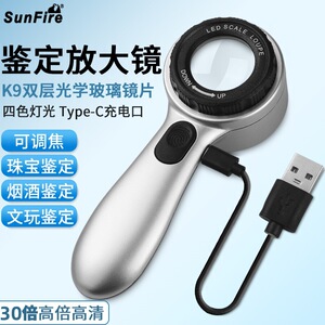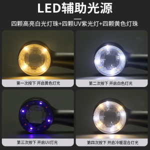 USB 充電式高倍率 30 倍ハンドヘルドポータブルジュエリー識別拡大鏡 4 光 LED 暖かい光 UV 紫色のライト 8690