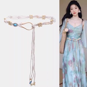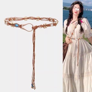 女性用織りエスニックスタイルウエストチェーン、サマーデコレーション、ドレス付きウエストロープベルト、アクセサリー、トレンディなウエストバンド