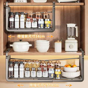 台所の伸縮可能なバスケットラック収納吊り下げ収納ラック穴なしキャビネット内吊り下げキャビネット下吊り下げバスケットラック
