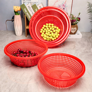 食材保存バスケット、ホテル野菜洗いバスケット、丸い赤い排水バスケット、シンク排水バスケット、プラスチックフルーツ洗浄バスケット