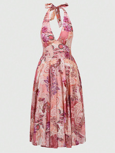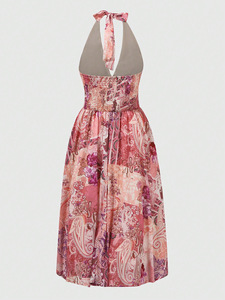 独立したサイト shein2025 新しい夏の女性の花柄バックレスハイウエストエレガントなミドル丈スカート