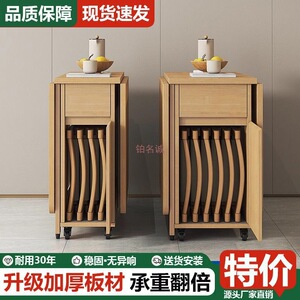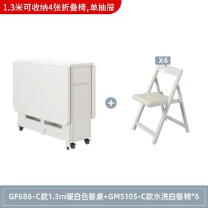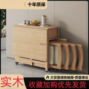 実木折り畳み食卓小戸型家庭用食卓セットシンプル現代6人移動折り畳みテーブル食卓