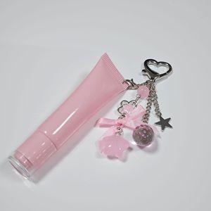 リップグロス用チューブ 8ml/15ml ピンク色 在庫あり 穴あき チェーン付き ペンダント付き 化粧品容器 アイクリームサンプル