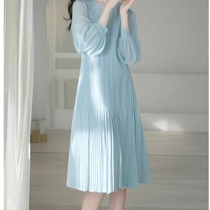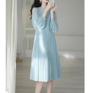 フレンチスタイルセレブ女神風ロングスカート、高級、絶妙、高級感、超見栄えの良い、優しい風のブルードレス、春