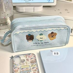 ins 小さな新鮮な 3 匹の子犬大容量痛バッグ多機能文具収納鉛筆バッグ鉛筆バッグ学生高価値