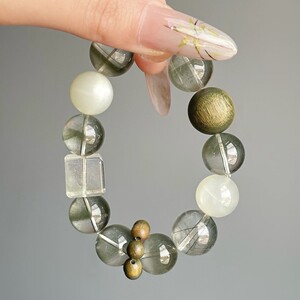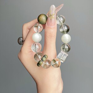 天然千層糸 グリーンゴースト カスミソウ グリーンゴースト シュガーキューブ グリーンゴースト グリーンサンダルウッド グリーンムーンストーン ブレスレット