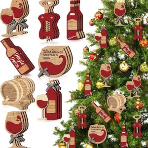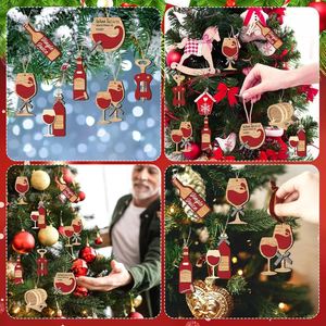 跨境新品圣诞酒瓶木质饰品圣诞葡萄酒木质挂件圣诞树装饰挂件饰品