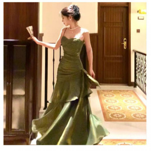 成人礼礼服裙轻奢小众吊带连衣裙绿色流光连衣裙
