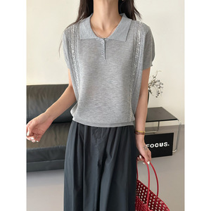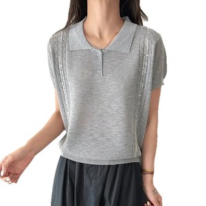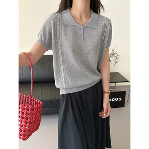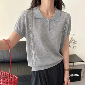 テンセルニット半袖 Tシャツ女性のための 2025 新しい夏薄いルーズスリムデザインポロカラートップトレンディ
